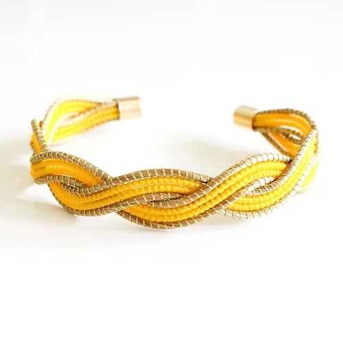Die gewundene Struktur erinnert an natürliche Lianen und bringt Bewegung und Dynamik ans Handgelenk – in frischem Gelb oder zartem Rosa. Ein farbenfroher Eyecatcher für jedes Outfit.