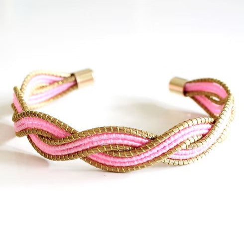 Details: Geflochtene Struktur, farbige Akzente, mattgoldene Endkappen