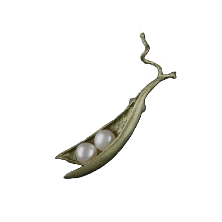 Die Erbsen gelten in vielen Kulturen als Glücksbringer. Der alte Aberglaube, dass das Zählen der Erbsen in der Schote die Ernte verdirbt, sowie der Brauch der Deutschamerikaner in Pennsylvania, Erbsen unter dem Sternzeichen der Zwillinge zu pflanzen, verleihen dieser Brosche zusätzlich kulturelle Tiefe.