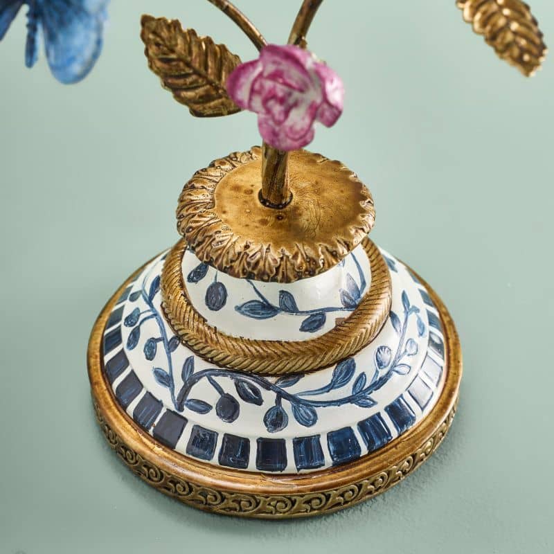 Natürliche Formen treffen auf verspielte Eleganz: Dieser mehrfarbige Kerzenleuchter mit Schmetterlingen ist ein dekoratives Highlight, das jedem Raum eine romantische und zugleich kunstvolle Note verleiht. Die filigranen Schmetterlingsdetails und die sorgfältig ausgearbeitete Form machen ihn zu einem besonderen Blickfang – ideal für Sideboards, Esstische oder stilvolle Dekor-Arrangements.