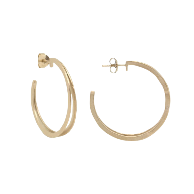 Hoop Double L sind besondere Kreolen für alle, die kleine Ohrringe mit Charakter lieben. Handgefertigt aus 925er Sterlingsilber und veredelt mit einem matten Hammerschlag-Finish, überzeugen sie durch ihr doppellagiges Design, das Tiefe und Bewegung erzeugt.