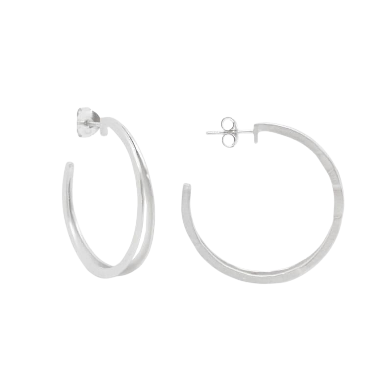 Hoop Double L – Doppelte Kreolen aus Silber mit Hammerschlag-Finish, Ø 3,5 cm