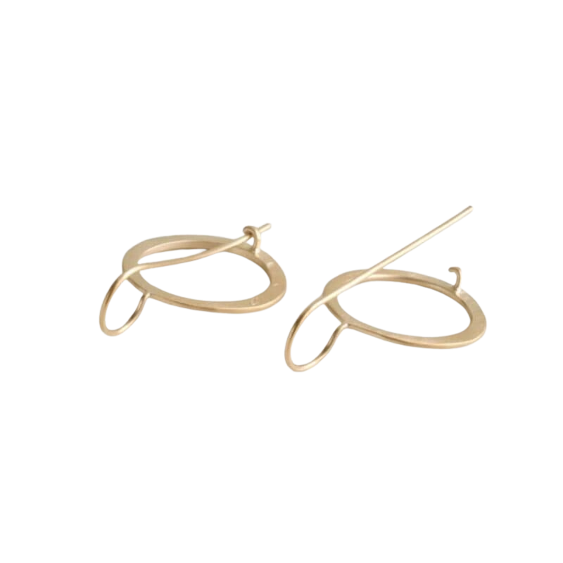 Hippies sind handgefertigte Kreolen aus 925er Sterlingsilber, die mit 18 Karat Gold (3 Mikron) vergoldet sind. Die matte Oberfläche mit feinem Hammerschlag verleiht ihnen eine natürliche Textur und einen dezenten, warmen Glanz – schlicht, aber ausdrucksstark.