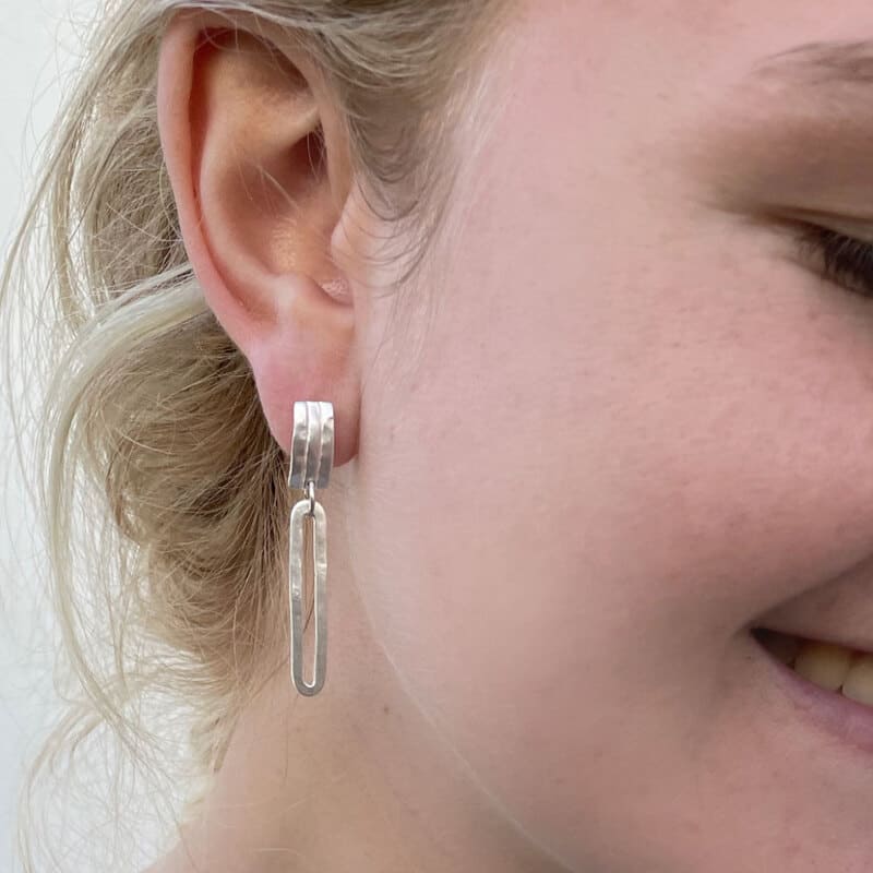Schlicht, handgefertigt und mit besonderem Schwung: Die Rock & Soul Sophie 'M' Ohrringe überzeugen durch ihre gehämmerte Oberfläche und ihr ausgewogenes Design. Die mittellange Form schwingt sanft bei jeder Bewegung mit und sorgt so für eine elegante Ausstrahlung – bei maximalem Tragekomfort.
