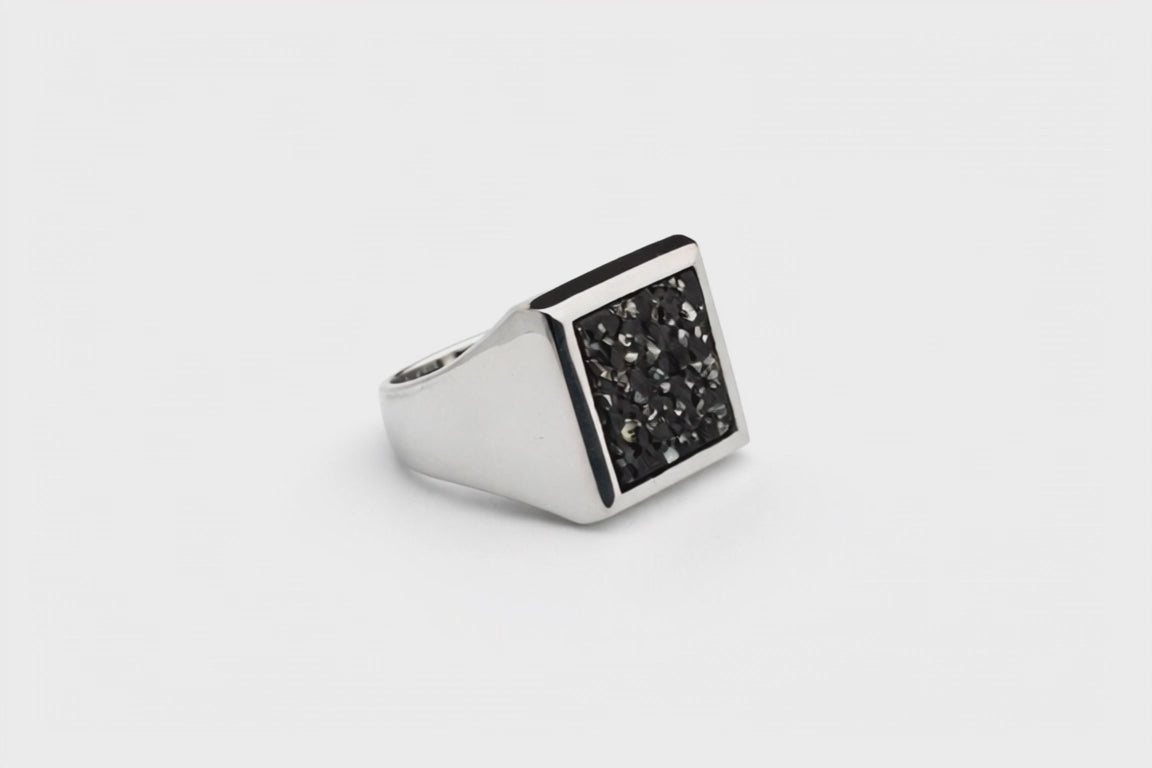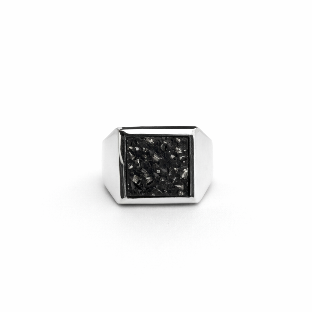 Dieser handgemachte Siegelring aus 925 Silber überzeugt durch sein klares, kraftvolles Design. Die quadratische Front mit schwarzer, strukturierter Oberfläche setzt einen markanten Akzent und verleiht dem Ring einen modernen, maskulinen Look. Jeder Ring wird in sorgfältiger Handarbeit gefertigt – leichte Unregelmäßigkeiten in Form und Oberfläche sind möglich und machen jedes Stück zu einem Unikat. Hochwertig verarbeitet, langlebig und angenehm zu tragen – ideal für Alltag und besondere Anlässe.