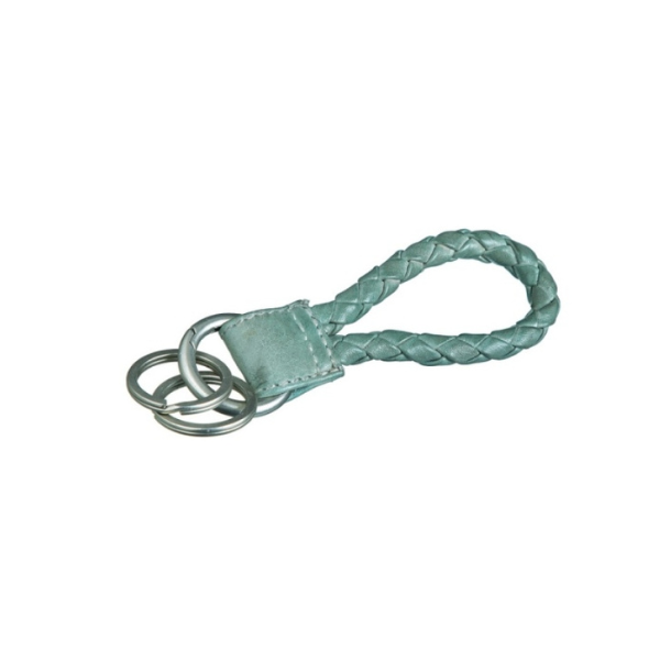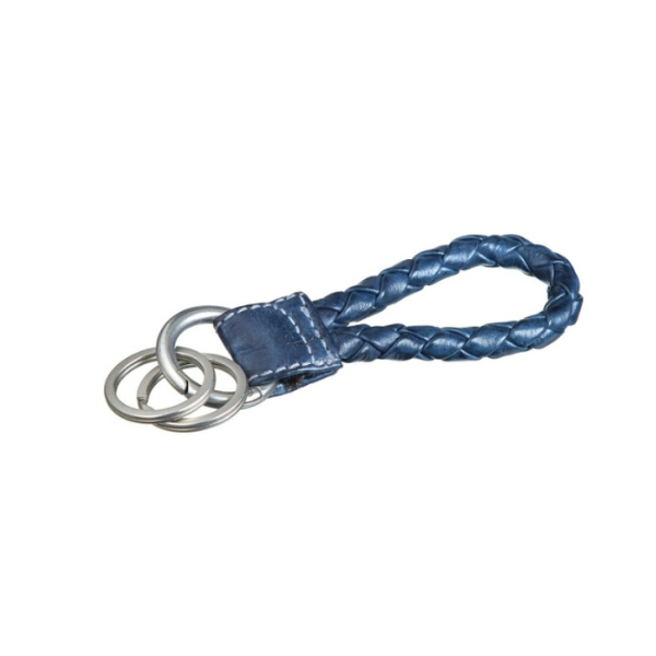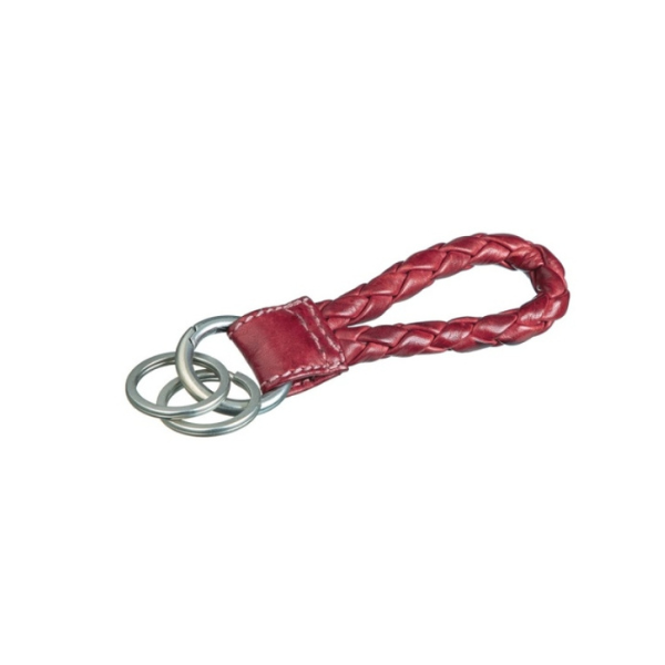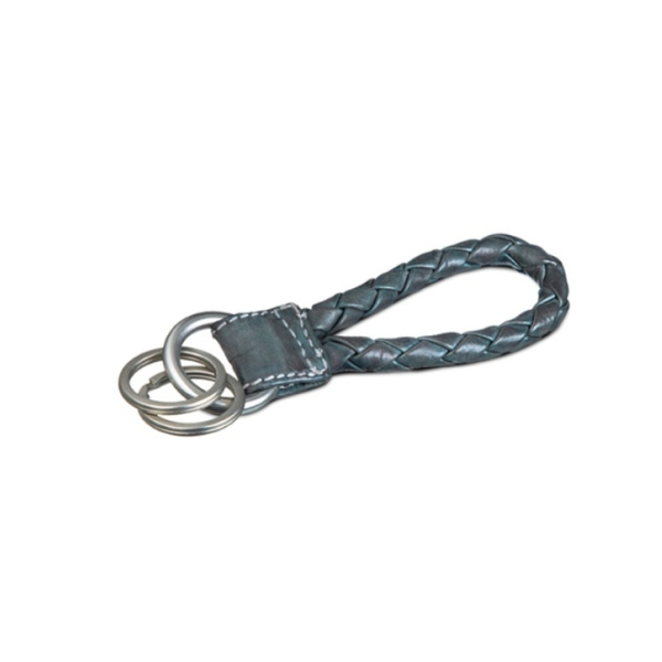 Details: Handgeflochtene Lederschlaufe, runder Karabiner, inklusive zusätzlicher Schlüsselringe