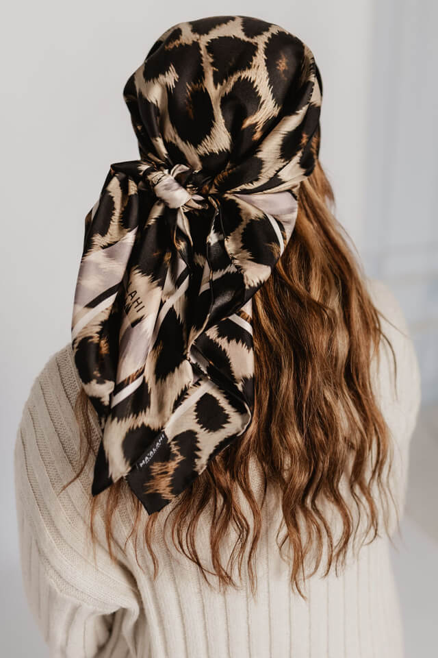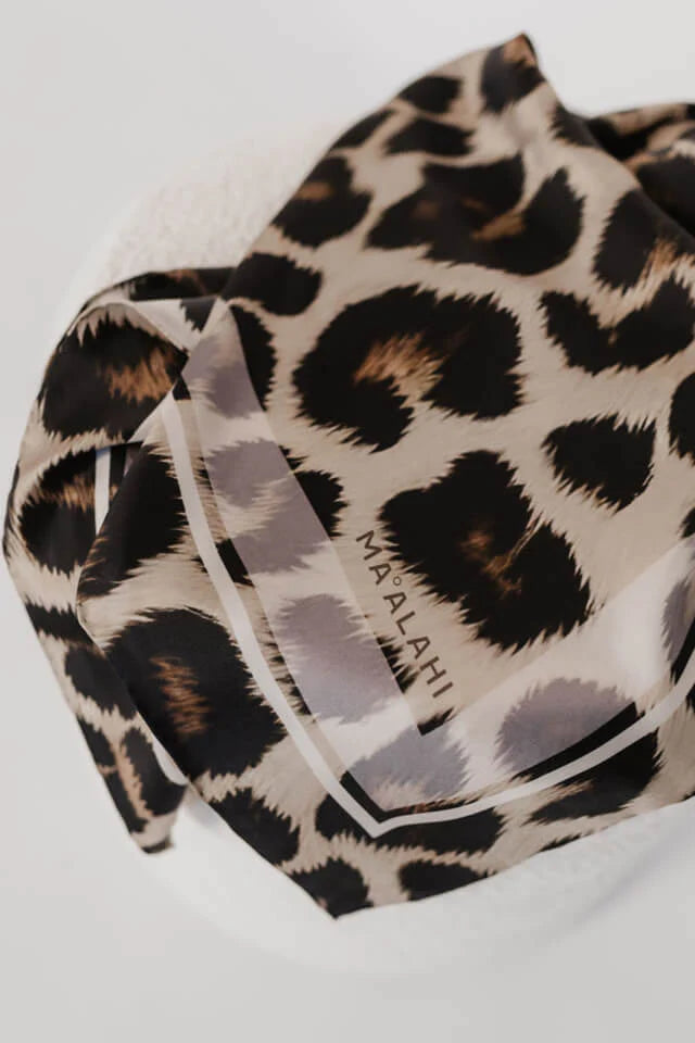 Zeitlose Eleganz trifft auf wilde Raffinesse: Das Seidentuch Leo-Creme vereint luxuriöse Seide mit einem klassischen Leopardenmuster und wird so zum stilvollen Blickfang für jede Gelegenheit. Die harmonische Farbgebung in Creme- und Brauntönen sorgt für vielseitige Kombinationsmöglichkeiten – ob im Haar, am Hals oder als dekoratives Accessoire an deiner Tasche.