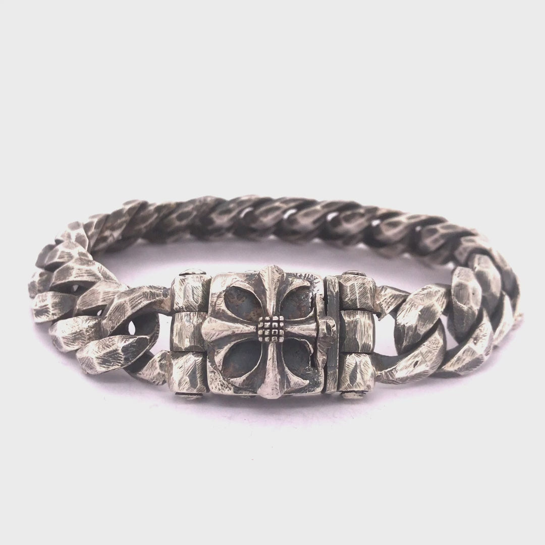 Auf dem kunstvoll gearbeiteten Kastenschloss thront ein detailreiches Malteserkreuz – ein Symbol für Stärke und Beständigkeit. So entsteht ein Armband, das zeitlose Eleganz und symbolträchtige Tiefe in sich vereint.