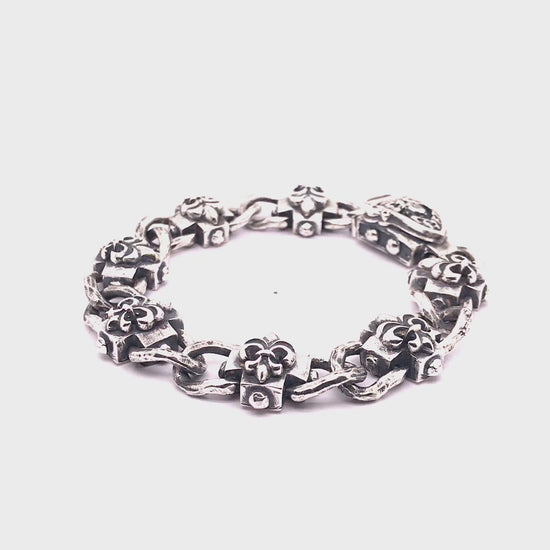 Silberarmband mit griechischen Lilienkreuzen und facettierter Kette mit Wappen-Boxlock 15