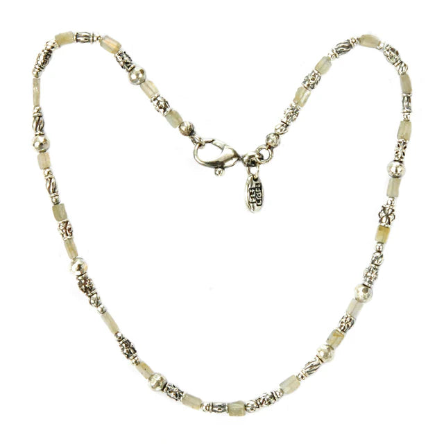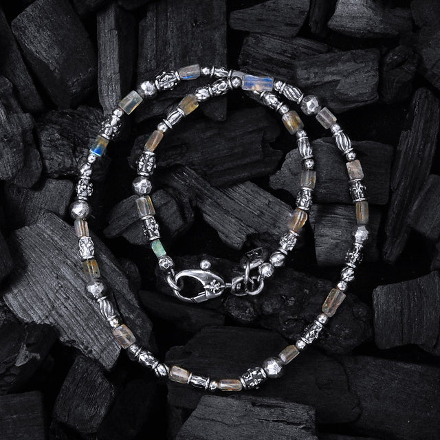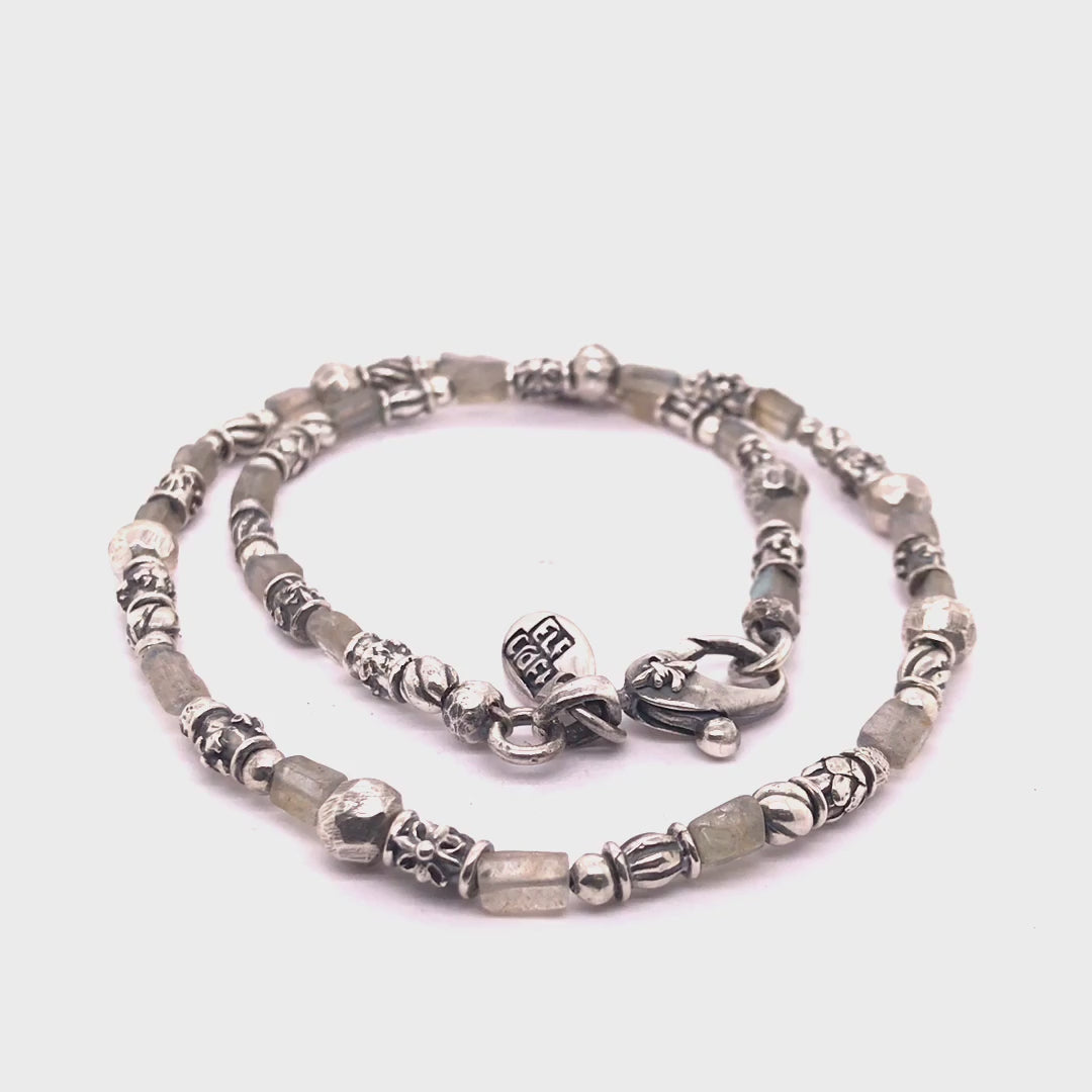 Silberne Halsbandröhren mit Elfendekor und LABRADORIT-QUADRATSTÄBEN