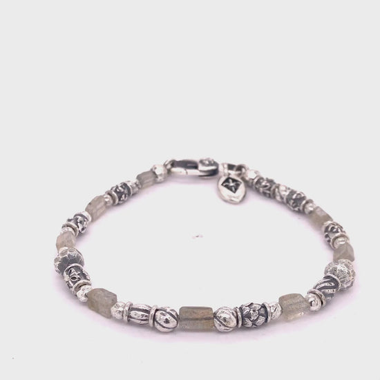 Silbernes Armband mit Mini-Decor Röhren und quadratischen LABRADORIT-Stäben
