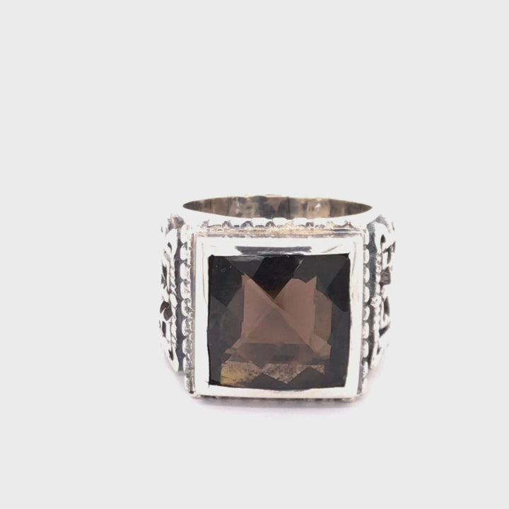 Silberring mit Meteorit & facettiertem Stein – luxuriös & einzigartig